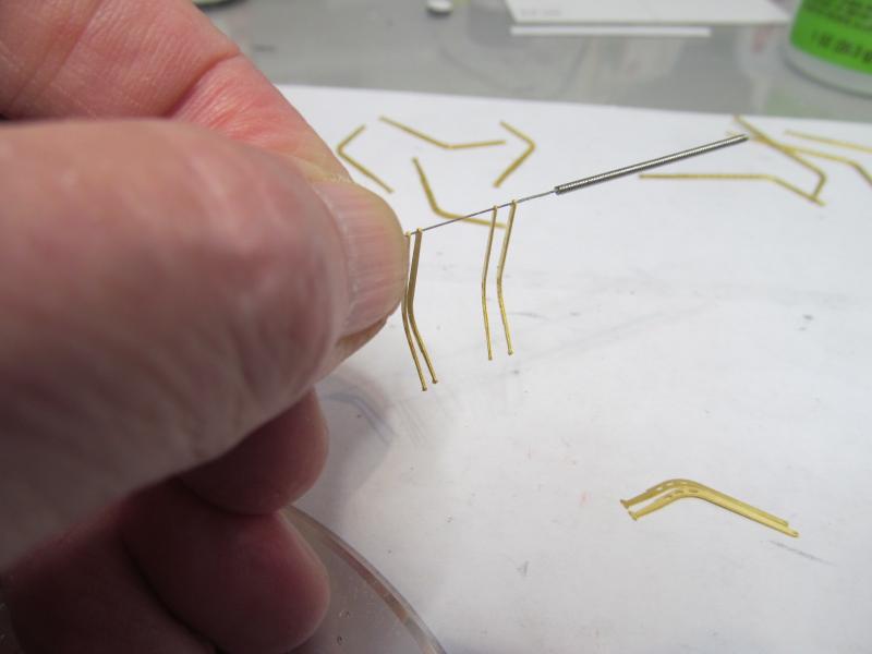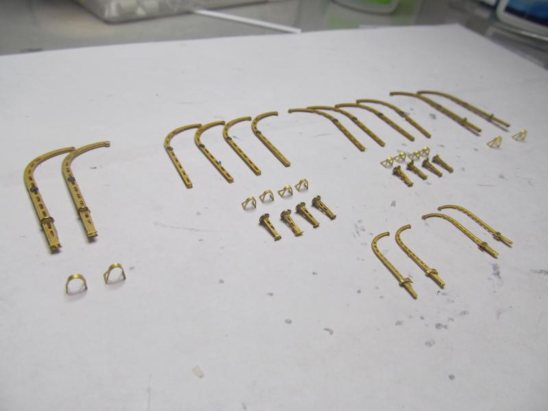Переводим в масштаб 1/200 - сколько получается? - а в 1/700? А в колечки внутри этих стоек надо ещё и "тросики" пропустить. А какой диаметр этик "тросиков" на прототипе? И будут ли они вообще видны на модели? Получается, что модель строится на 100% не соответствующая прототипу, т.к. "этого не было на самом деле". И что делать - перестать строить модели?