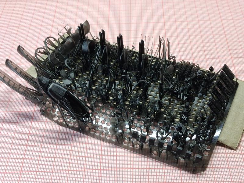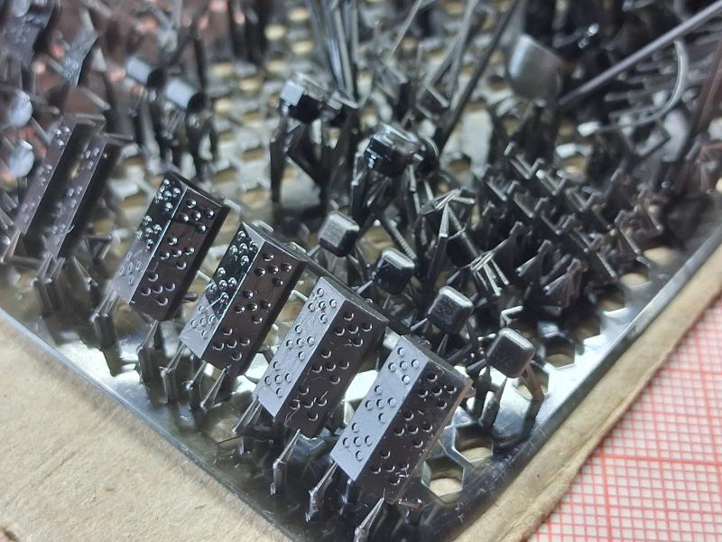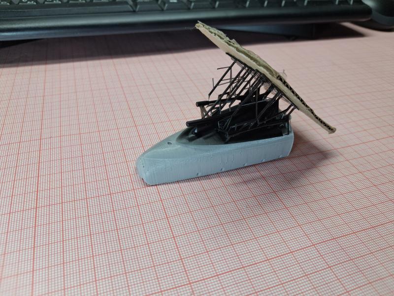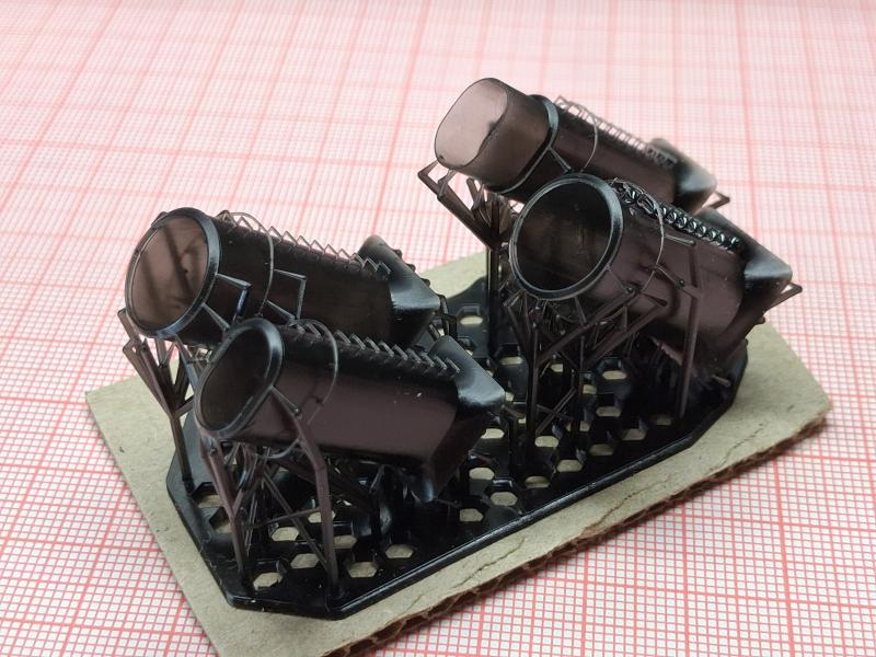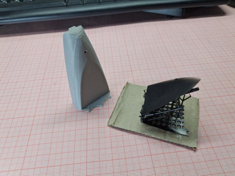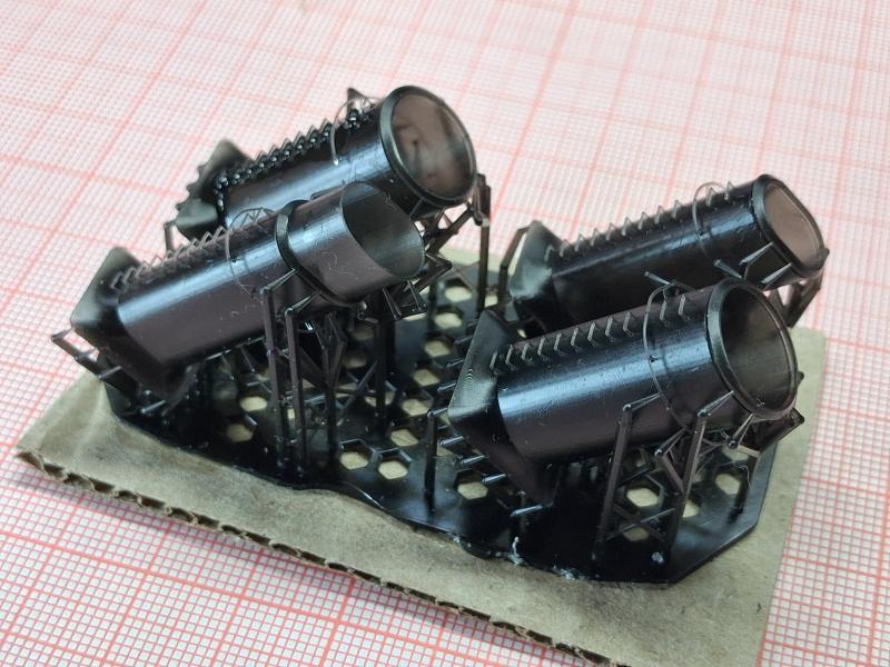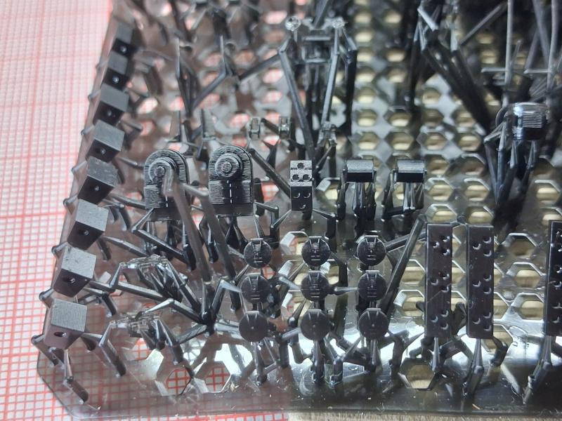 Добавлен: 01.03.2026 17:04:39Получая посылку с напечатанными по моим файлам деталями чёй-то разволновался, стоял «еле живой, ни петь, ни рисовать». А потом махнул рукой: «Понеслась косая в щавель!», сам нарисовал – сам перерисую, если что не так. С краном в принципе все оказалось нормально, для его доработки будут использоваться детали фототравления. Кран на фото еще не склеен, детали держатся "на сухую". И непонятные ящики для ракетных шахт получились. Комплекс «Корвет» меня полностью устроил. А вот вентиляционные колпаки получились неожиданно мелкими (фото выкладывать не буду), буду переделывать… 1