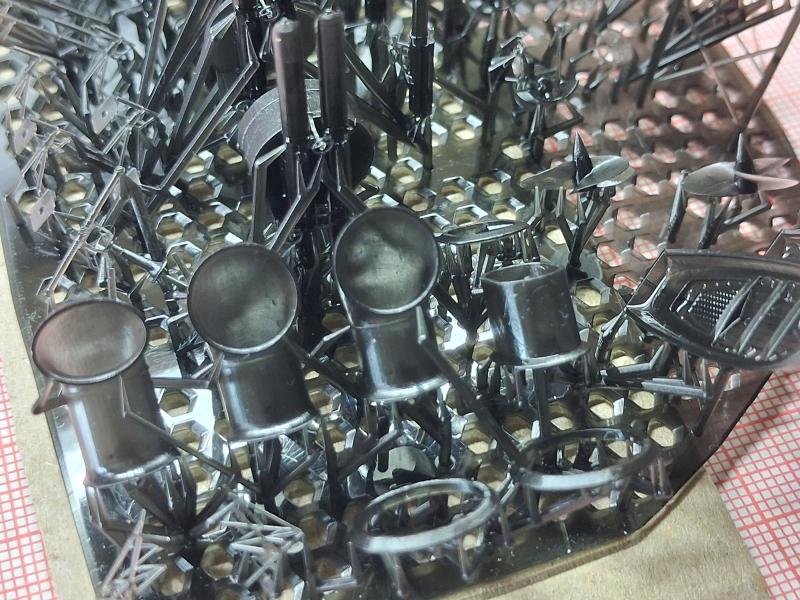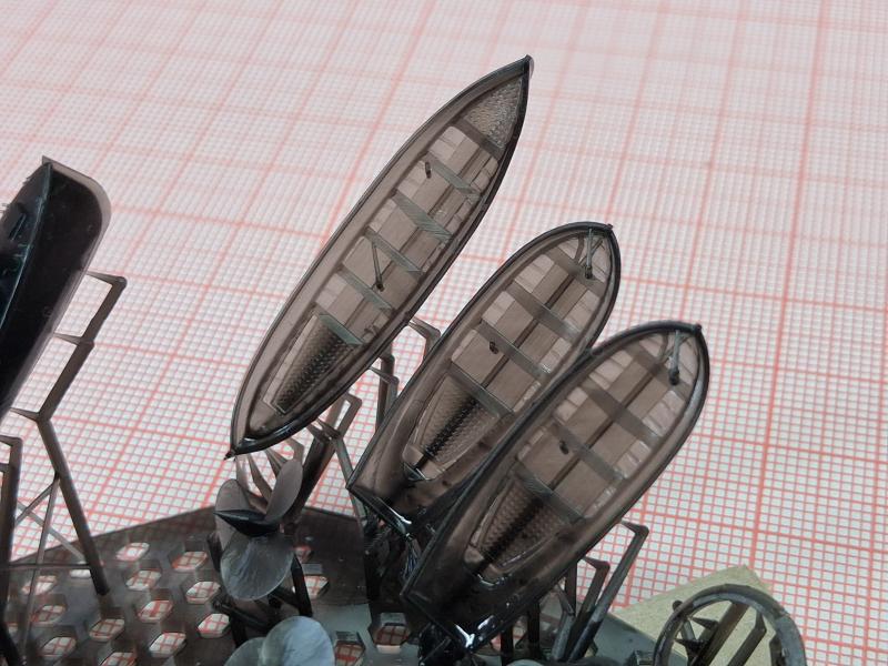 Вся остальная деталировка выполнена фотополимерной печатью. Трубы, орудия, торпедные аппараты, световые люки и… оба-а-а-лдеть, штурвалы и еще что-то напечатано так классно, тонко! Похоже мастер получает от оборудования все возможное! Может это возрастное, но я испытываю сразу восторг, восхищение и удивление.