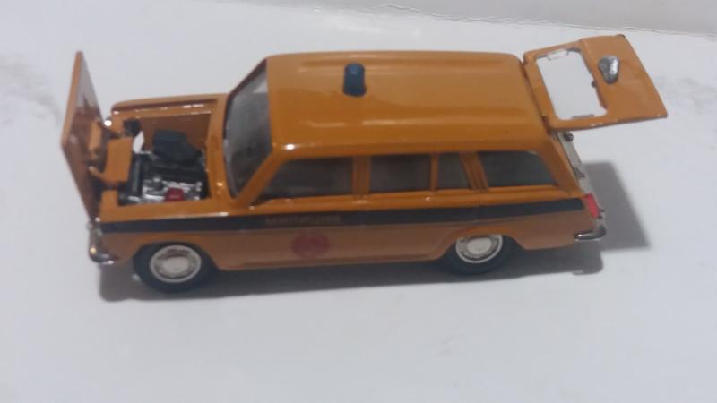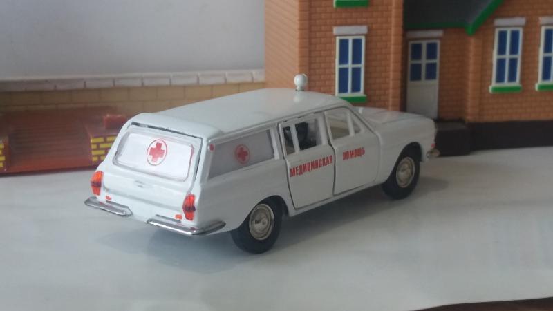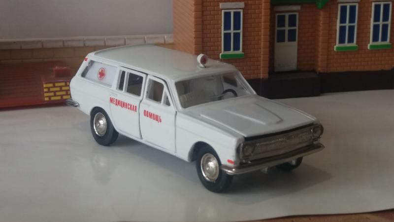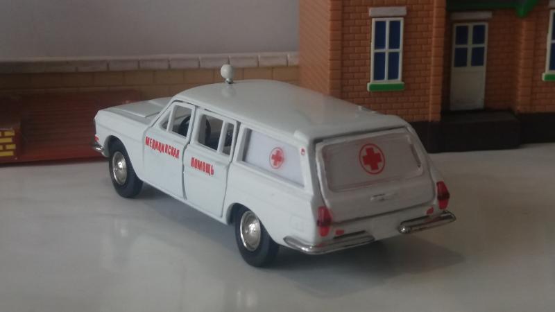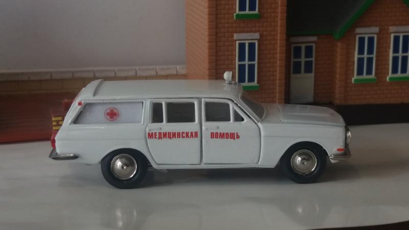 Очередная конверсия - ГАЗ-2402 "медицинская помощь". Таких "скорых" с носилками у меня несколько вариантов, а просто медицинской не было. Тема была навеяна тем, что приобретенная ярко-зеленая модель универсала не имела задней двери, а многочисленные подборы краски не дали хорошего результата, а так же подсказана аукционом "Мешок", на котором какой-то чудик продает аналогичную модель за 39000 рублей. В чем прикол не понимаю.