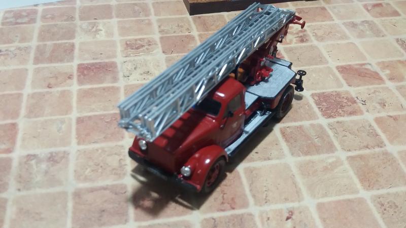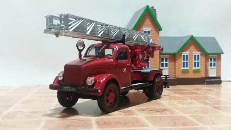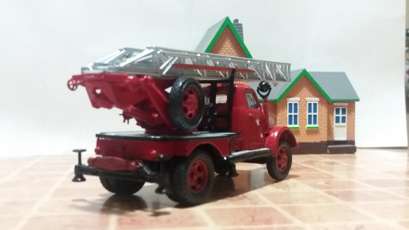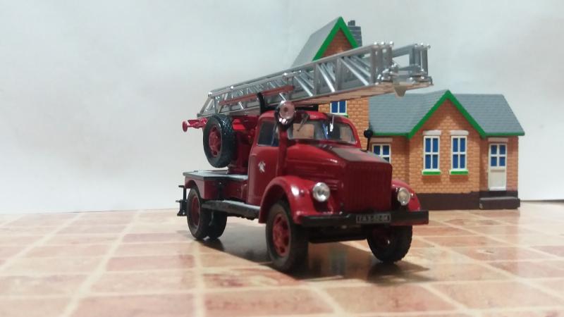 Давно хотел сделать конверсию пожарной автолестницы АЛ-17 на шасси ГАЗ-51А. Такая машина участвовала в съемках фильма "Невероятные приключения итальянцев в России". Хотел использовать хорошую модель Газ-51, но свободной под конверсию не было. Пришлось взять за основу модель от НАП ГАЗ-52 с хорошо проработанной рамой, а кабину от ГАЗ-51 "Мясо" из серии АНС. Дальше - дело техники и подгонка всех деталей так, что бы все винты креплений совпали. Краска с автоподбора.