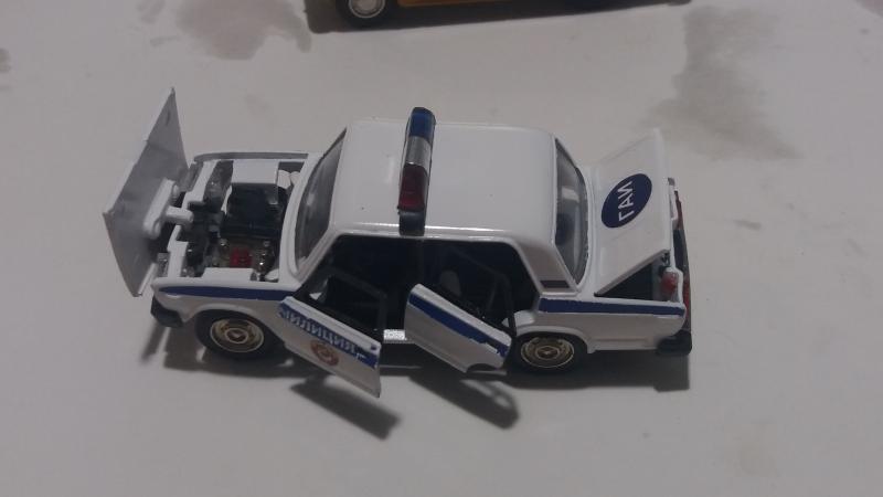 Очередная конверсия - ВАЗ-2102 "милиция" посвящена служебной машине ГАИ 70-х 80-х годов прошлого столетия. Досталась мне, конечно не бесплатно, убитая моделька а11. Решил реставрировать, но немного изменить её имидж. На аукционах часто видел подобную конверсию. Решил сделать. Недостающие: двигатель, заднюю дверь в сборе, бампера, стекло салона, сидения, задние фонари, решетку радиатора и конечно декали из Ессентуков приобрел у коллеги их РФ. Параллельно шла реставрация ВАЗ-2105 ГАИ СССР образца конца 80-х годов. К сожалению декали на неё лежали у меня лет 5-6 и высохли... Это выяснилось лишь при их нанесении. Собирал из кусочков, но желаемое не получилось. Теперь заказал новые, которые заменю на данной модели по их прибытии. На них прошу сильно не реагировать. "Люстру" перепилил сам из большой от игрушки. Заднюю левую дверь конечно подгоню. Кузов был заводской, не крашенный и не подогнанный. Хорошо когда есть над чем работать. Для меня это хобби - вид отдыха.