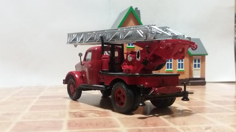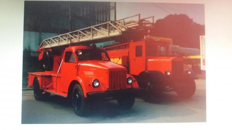 Для справки сообщу, что первые подобные автолестницы в СССР собирались с использованием установок от трофейных немецких пожарных автолестниц на шасси Мерседес-Бенц L4500F, вывезенных после войны из Германии. Именно такая установка стоит на данной конверсии. В дальнейшем установку немного доработали, применив отечественные детали и немного изменили обшивку платформы.